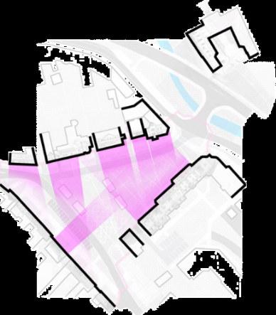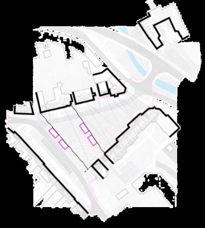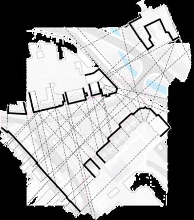 přesnémšachovnicovémuspořádání,kterépodélcest vytváří soudržný vzhled. Tento plán vyhází z řešení dopravního obsloužení území a zároveň navazuje na uliční čáry již existující zástavby. Navržené domy vytvářejí přirozenou hranici mezi oblastí vyhrazenou propěšíaautomobilovoudopravou.