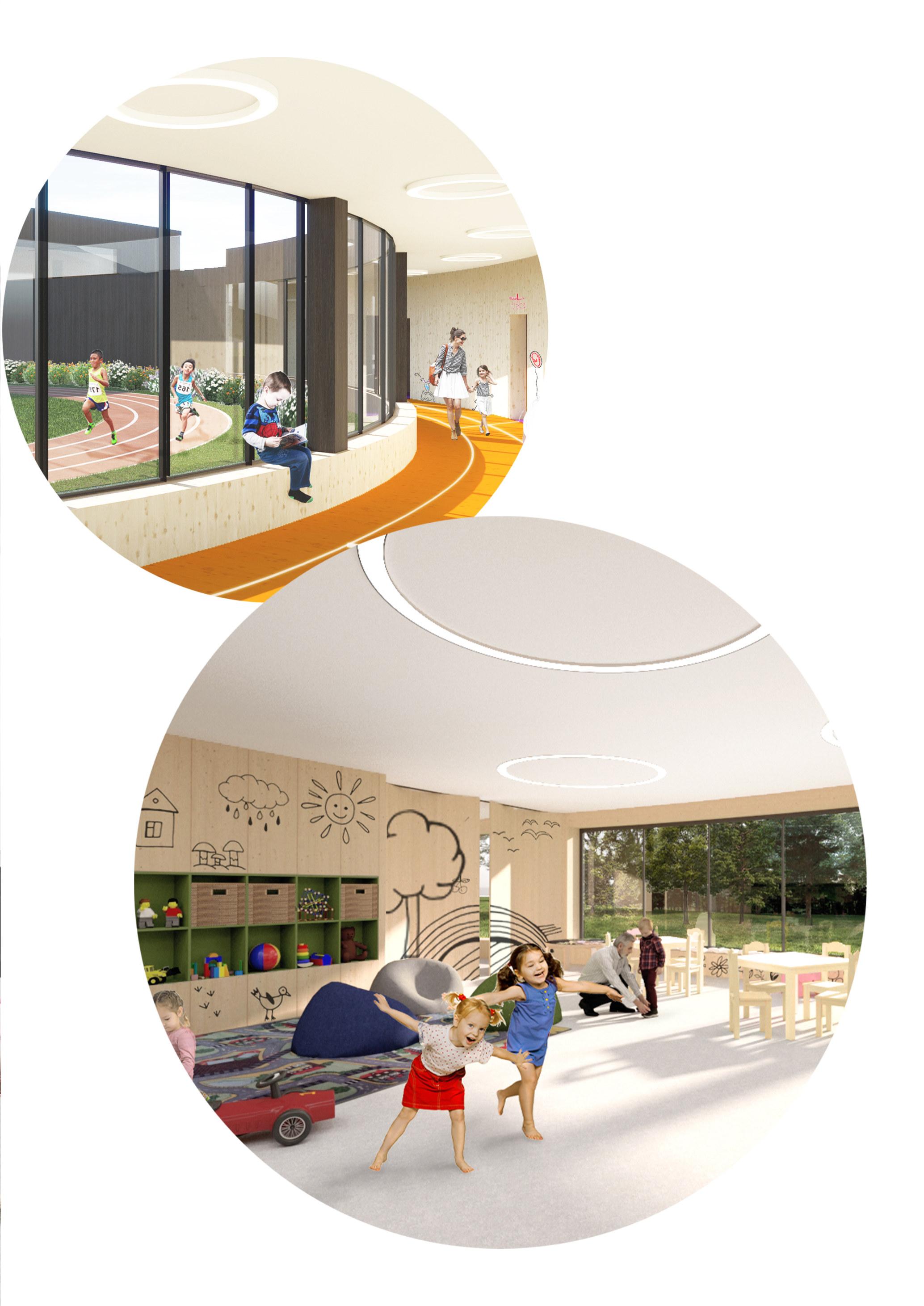 Zdefinovánísi,čímbymateřskáškolamělabýt,vzešla koncepce atypického tvaru členícího pozemek na tři základní prostory a to - budova, chráněné venkovní átriumazahradanavazujícínacyklostezku.