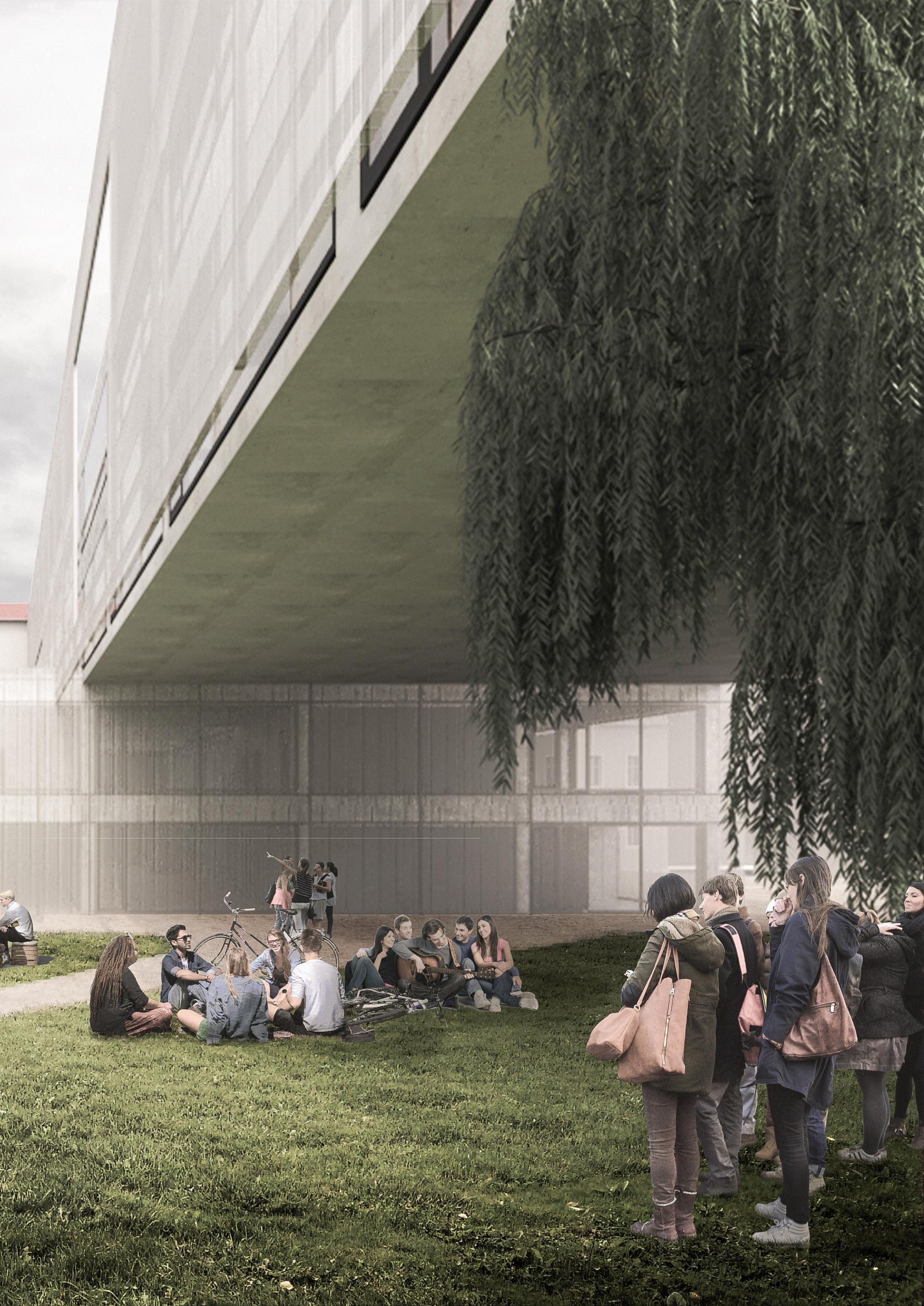 Nově přesunutá fakulta má využívat jednu ze zde stojícíh budov v doplnění o přístavbu zaručující dostatečnýprostorprokreativnítvorbustudentů.