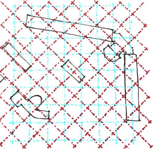 Vynesení a zvýraznění dvou základních ortogonálníchsítí,kteréjsouoprotisobě pootočeny.