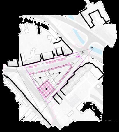 V poslední fázi návrhu je kladem důraz na zjemnění struktury zástavby a to za pomoci zelených ploch s hustouvýsadboustromů,vysokýmitravinamiapěšími komunikacemi propletajícími se mezi nimi, které se oproti možná až rigidnímu šachovnicovému plánu zástavbyorganickylinouskrzejednotlivéčástiúzemí. Tímjedosaženorozmanitéhoveřejnéhoprostoru,jenž dávámožnostneustálémuobjevovánínovýchzákoutí.