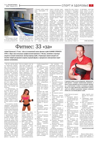 будет гораздо легче бросить это «черное» дело. 9. Страдающие мигренями получат облегчение боли. 10. Ваш сон улучшится, станет глубоким и спокойным. 11. Иммунная система придет в порядок. Как вы сами понимаете, это лишь схематичное описание пользы физкультуры. Не сомневаюсь, что у каждого из вас найдется, чем дополнить этот список. Будьте здоровы и получайте удовольствие от жизни. В следующем номере я расскажу, как нужно правильно питаться, чтобы похудеть и какие тренировки больше подходят для этого. АНДРЕЙ ЛУКОМСКИЙ