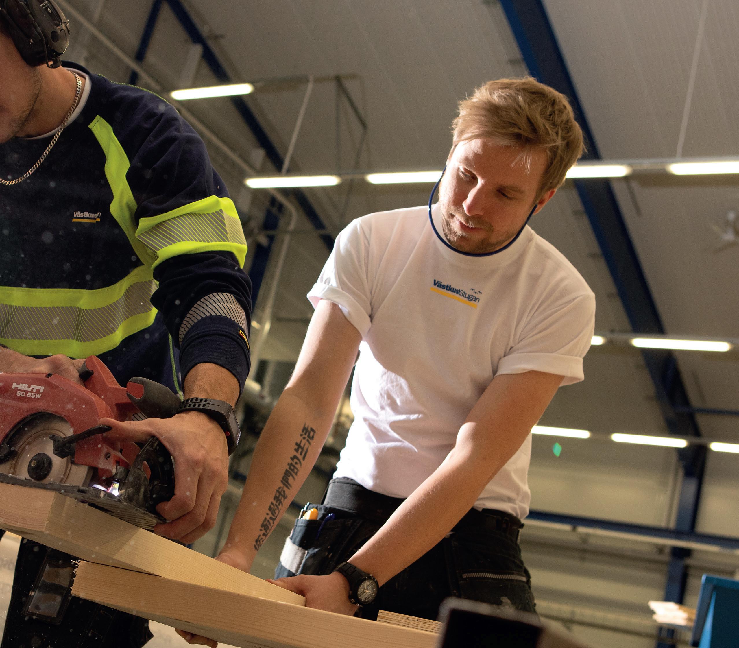 Kan man ha hantverk i en fabrik? Ja, givetvis kan man det. För oss är fabriken VästkustStugans hjärta och en plats där våra skickliga hantverkare jobbar. Eftersom vi erbjuder er ett personligt hem krävs hantverkskunnande. Det har vi haft med oss sedan vi startade 1932. Vi har familjer som arbetat hos oss i generationer, folk från bygden där hantverket gått i arv.