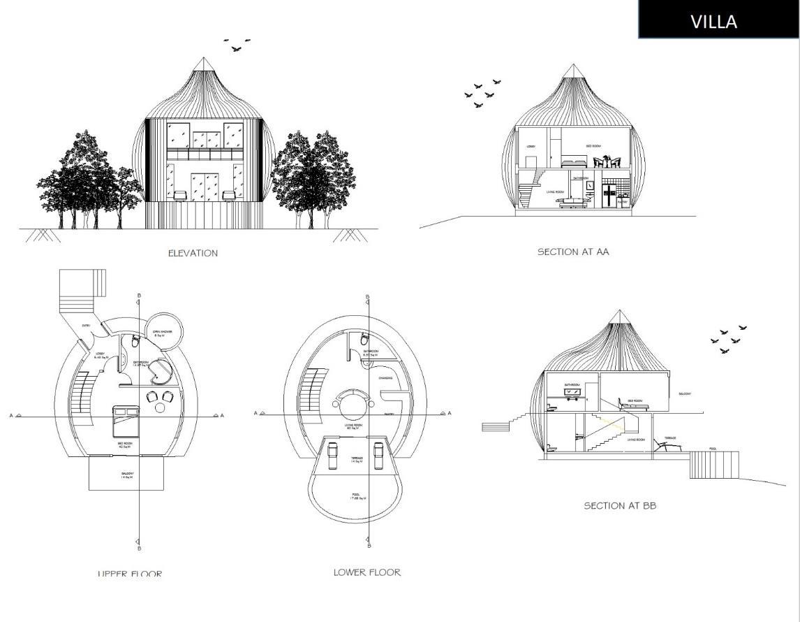 CONCEPT : BAYAWEAVER NEST THE CONSTRUCTION OF VILLA IS INSPIRED BY NEST , WHERE IT FORM FOLLOWS FUNCTION ,THE CONSTRUCTION TECHNIQUE USED HERE IS BAMBOO ACT AS THE SKIN OF STRUCTURE WHICH LOOKS LIKE NEST.