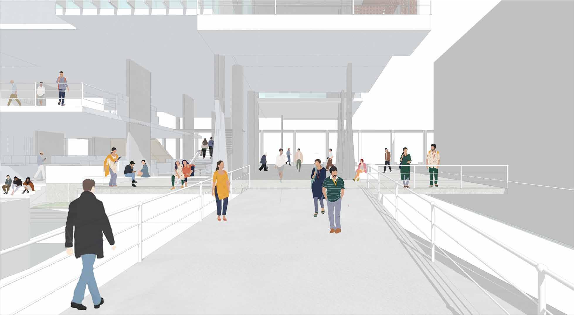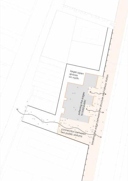 form becoming an entrance throughfare between road and station with ground floor becoming a completely public space.