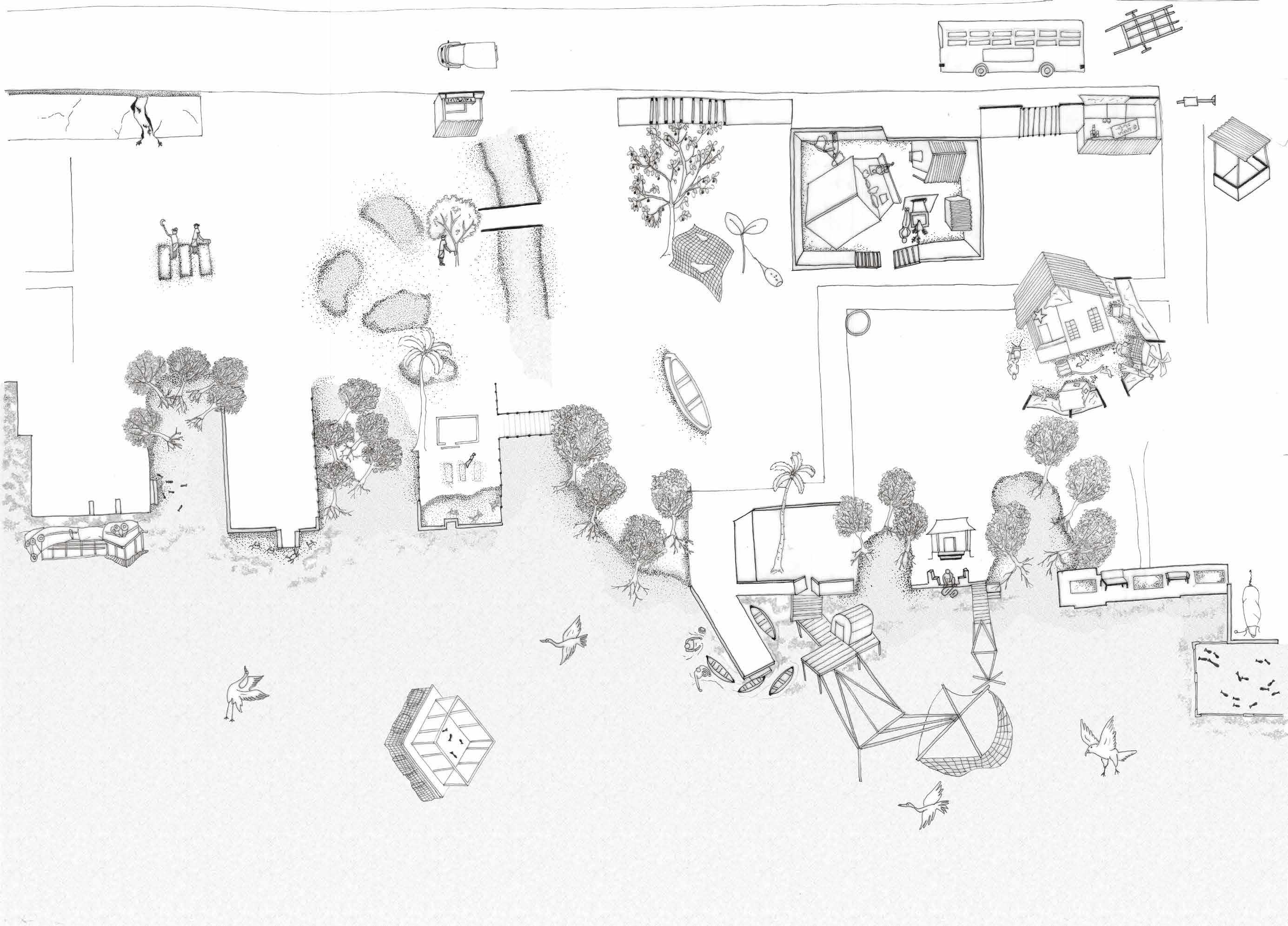 Spatial intent were to make the promenade porous by adding series of saru trees and landscape to allow natural flows and how will landscape shape the form like a ramp which slowly leads down or a series of ramp and terrace gardens getting generated to softly merge with ocean and sand. Treating storm water drain by creating series of reed beds and undulations / terrace and then spaces getting created in and around it. Leisure spaces getting created not only visually but also allowing other senses in the form of viewing decks,garden/park spaces and amphitheatre and inculcating it with services. Creating smaller nuances in the form of people experiencing vegetation , ocean ,sand,water