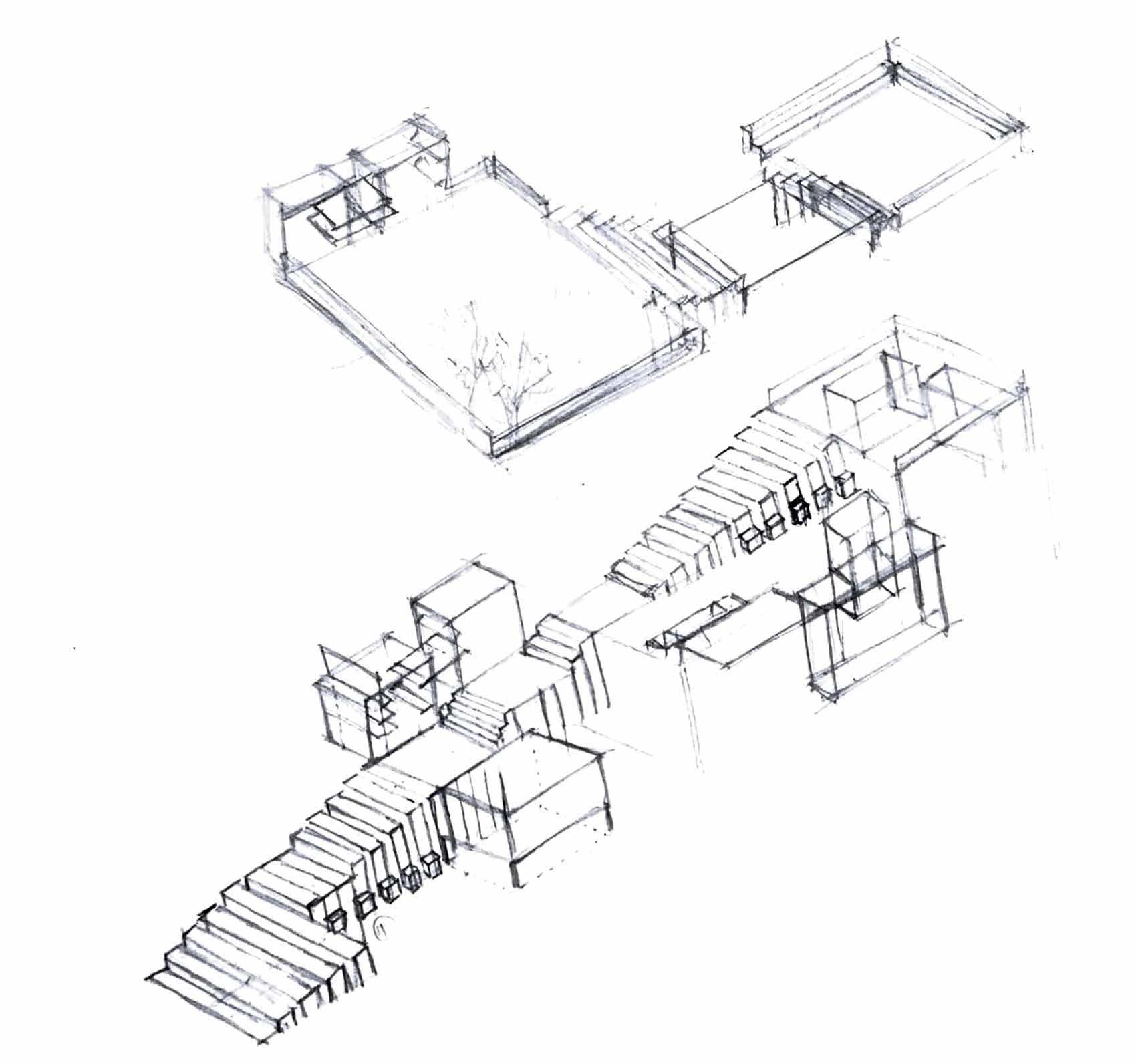 Taking the idea of cloaking space, scaffolds further and how it is placed in a order and form and from that I moved upon to ideas of different plinth levels and making more iterations with design syntax being more dilute.The idea of scaffolding and different plinth level arises from how the storage spaces was used from observations. Further taking this diagrams ahead and sketching according to the conditions which the site offers and where can these levels be placed.Like a pathway inside the billboards or the shops plugged into the mall itself and the drive through shops below the canopy. After covid this design can become a public space making its own small pockets having different public experiences.It can even have small performances at certain points. Because once the mall is open the usage and interactions happening will be increased considerably and will become an extension to the mall as a place to loiter around like they used to do earlier in hypermarkets before covid.