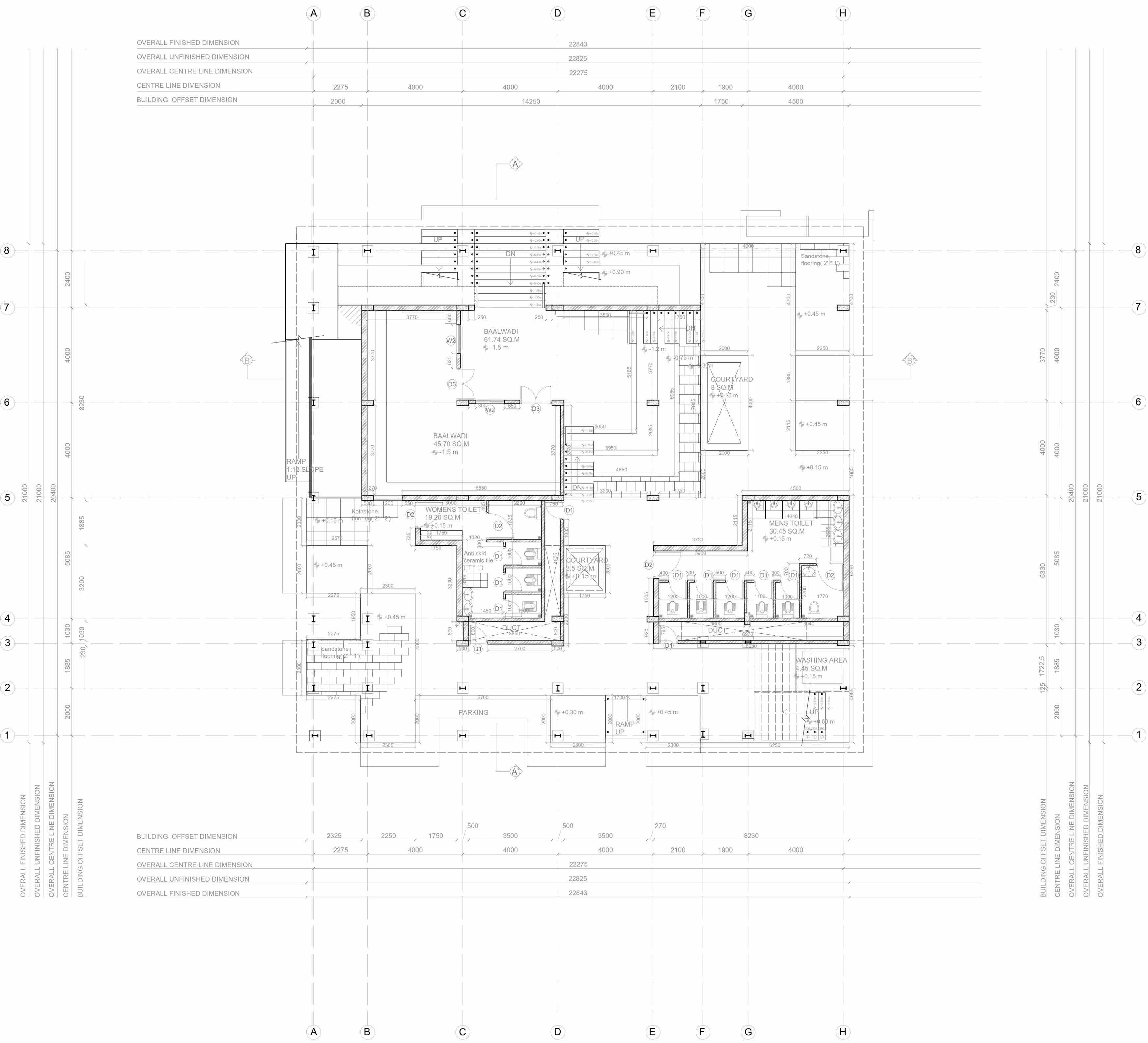 The course explores the concept that the “public” is not a uniform entity, but rather a diverse collection of individuals with differing needs and behaviors. The chosen site is Cheetah Camp, a tightly-knit settlement in Trombay. The objective is to design a pathology lab , baalwadi , public toilet and how these three spaces can be interwined creating common community spaces in between. The module aimed to bridge the gap between conceptual design and actualization, resulting in a comprehensive construction documentation set. This included specifications, quantities, estimations, and the integration of various materials and assemblies in a way that aligns with the building’s overall concept