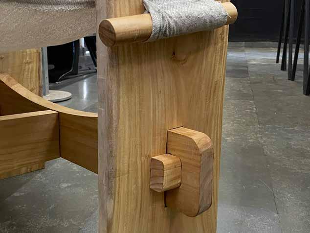 The exploration began by studying wood joineries and their strengths across different wood types. This material study was realized through designing a chair, envisioned as a detachable piece for easy portability. The chair’s final form, three legs and a soft fabric seat adapting to the user’s posture helped me understand the structural integrity and material strength of assembled components while preserving the character of assembly.