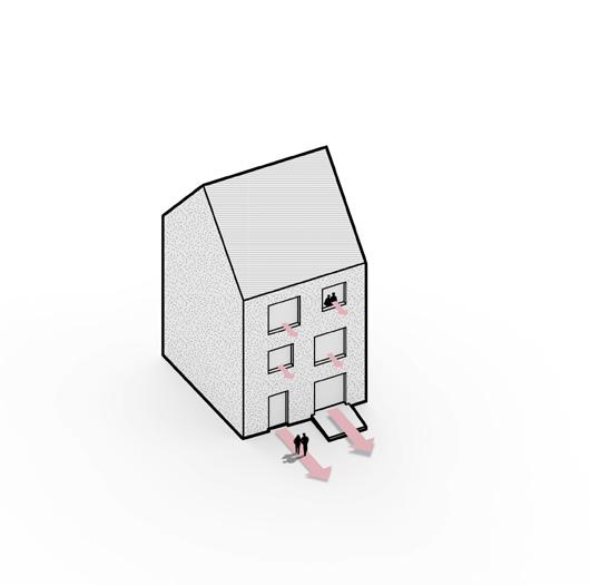 Schéma dispozície vyplýva z tradičného slovenského domu so severnou chodbou a izbami priamo napojenými na fasádu Bratislavy.