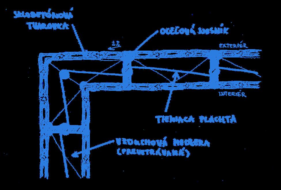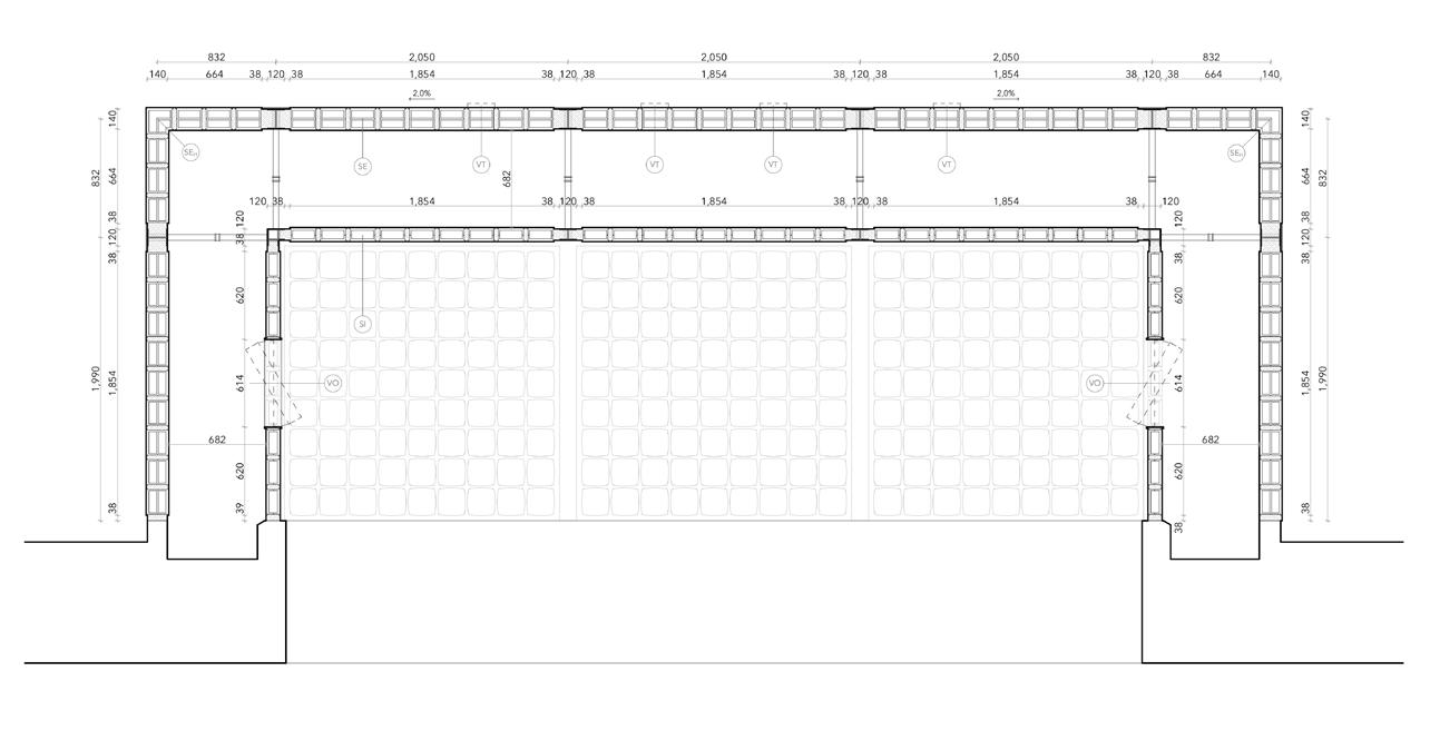Translucentný strop je navrhovaný ako dvojpláštová sklobetónová kopula s prevetrávanou prieleznou vzduchovou medzerou. Bloky skla sú osádzané do konštrukcie oceľových nosníkov s prerušeným tepelným mostom.