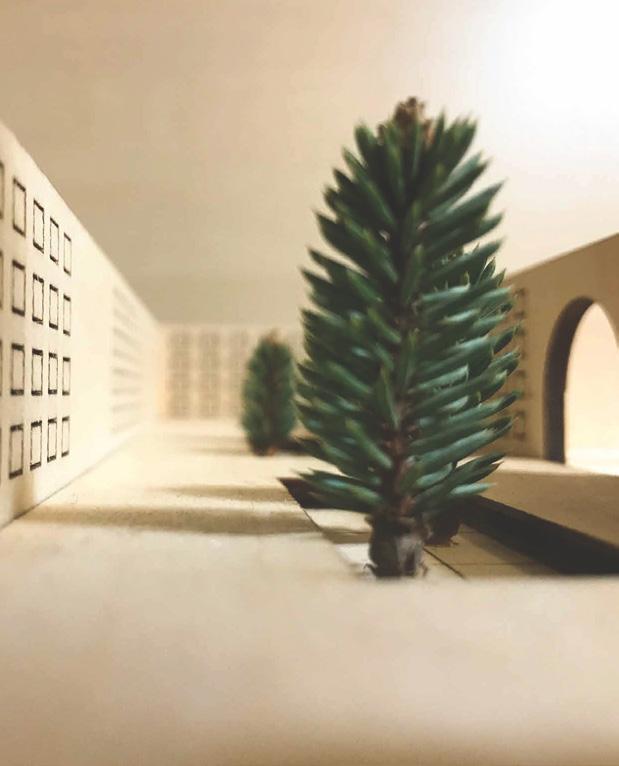 Idea átria vytvára dva rozličné priestory, ktoré na seba nadväzujú spolu so všetkými prevádzkami tak, že dokážu nerušene fungovať jedna s druhou i s okolitým parkom cintorína.