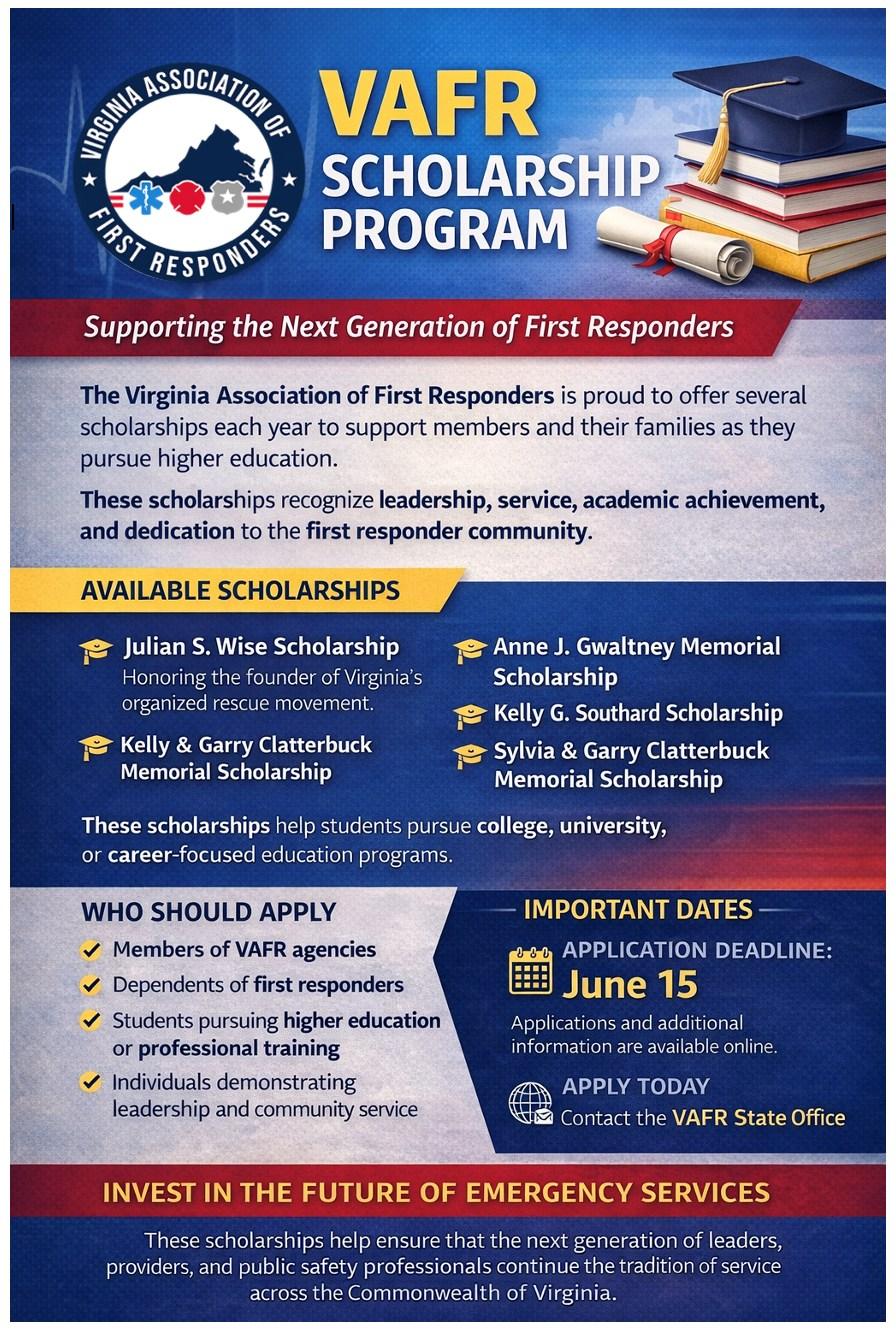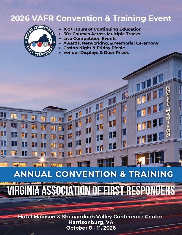 I encourage you to consider how you can contribute to this next chapter in the Virginia Association of First Responders. Step forward. Encourage others. Help us build the leadership team that will guide our Association into the future.