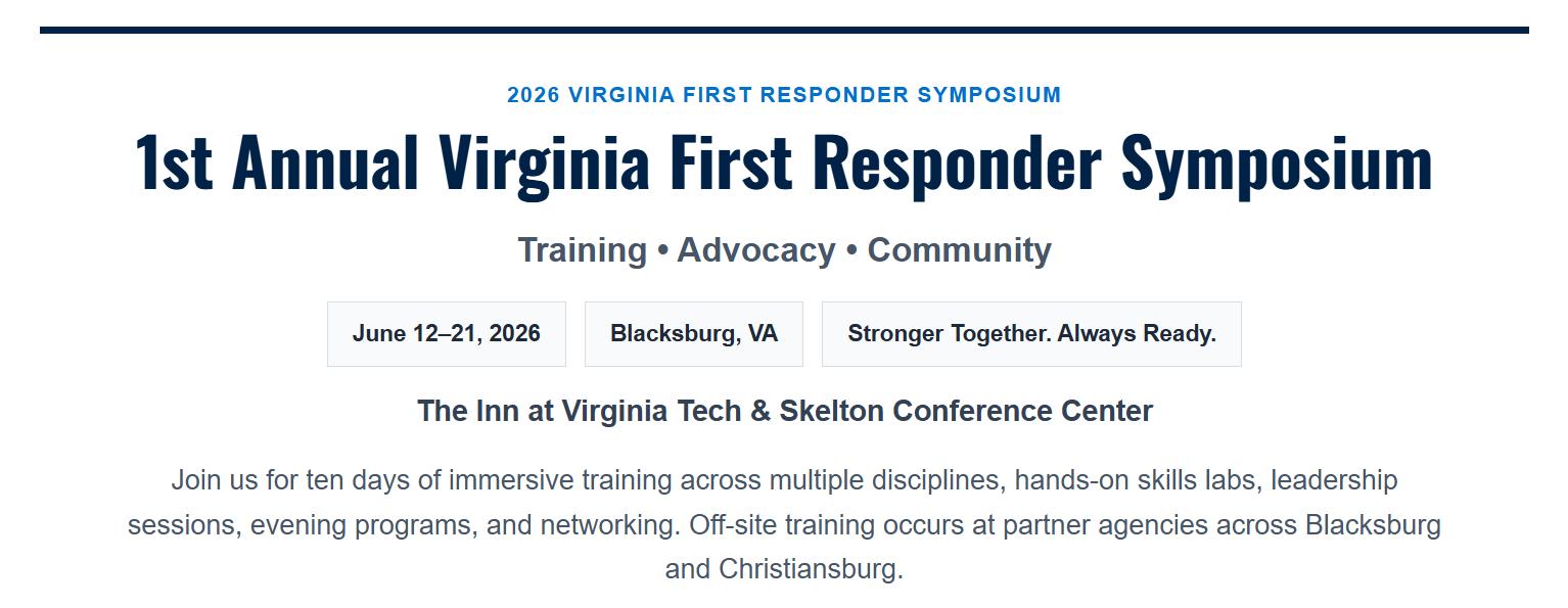 Striving to be a nationally recognized leader in serving Virginia’s First Responder community through exceptional training, fostering collaboration, developing leaders, and advocating system needs.