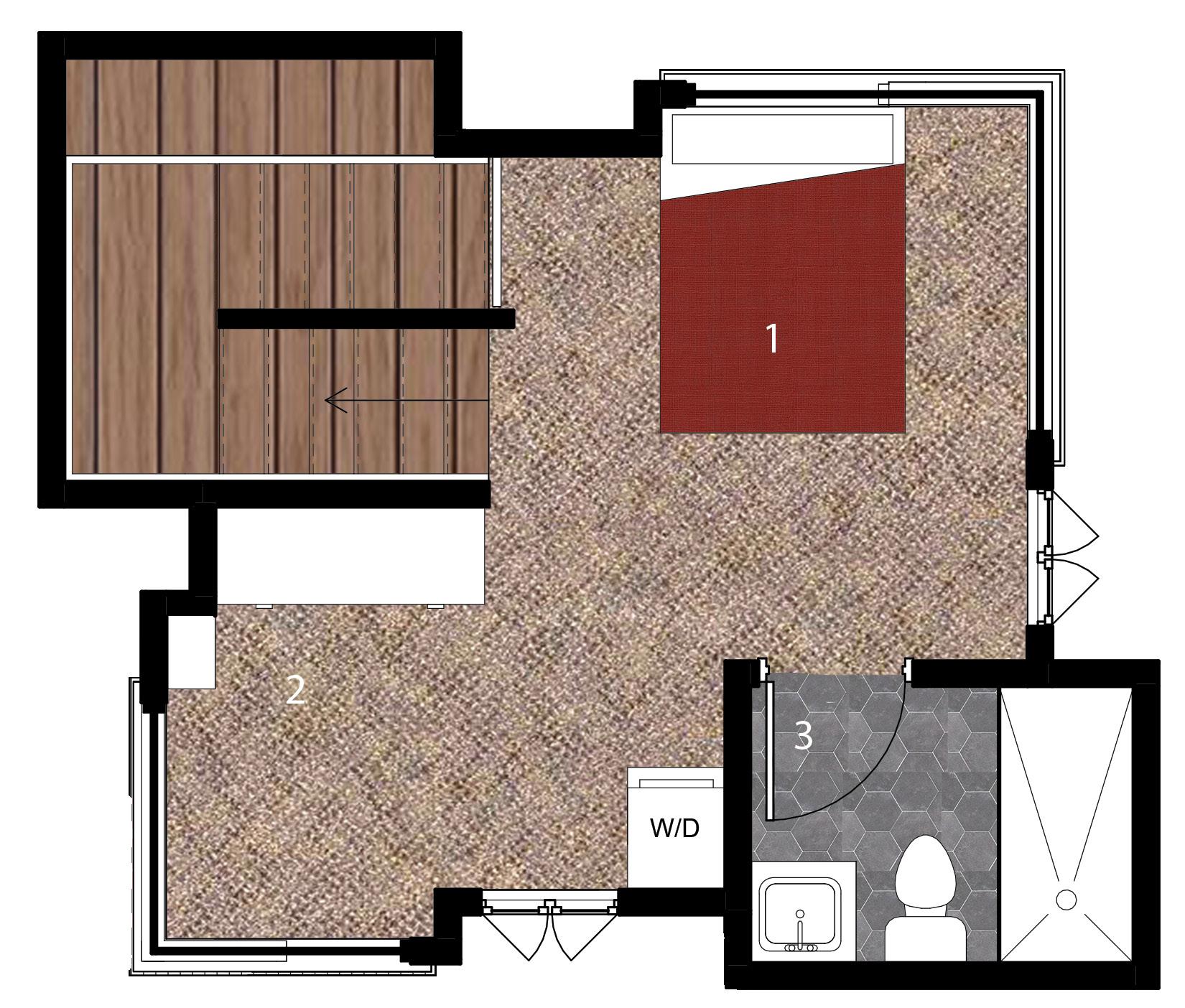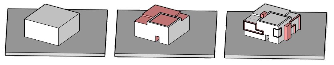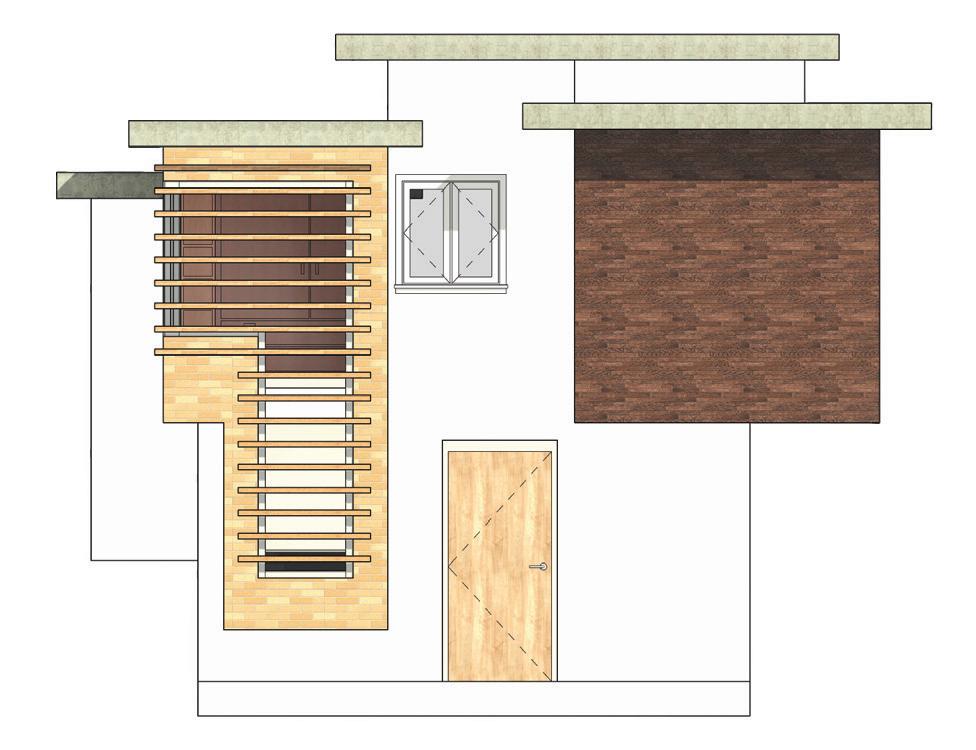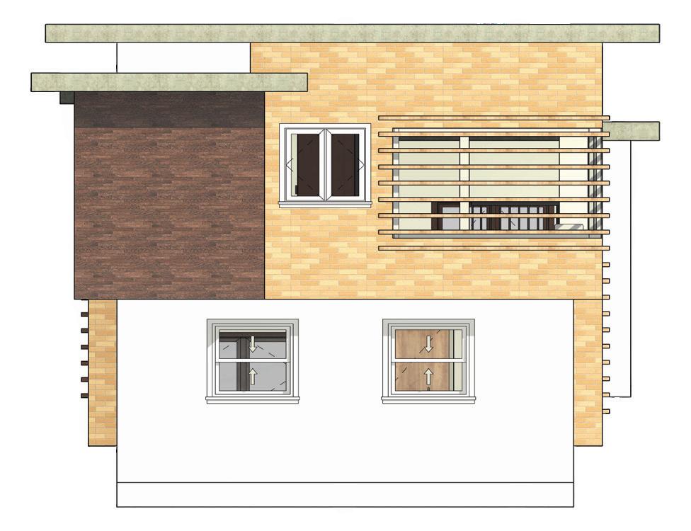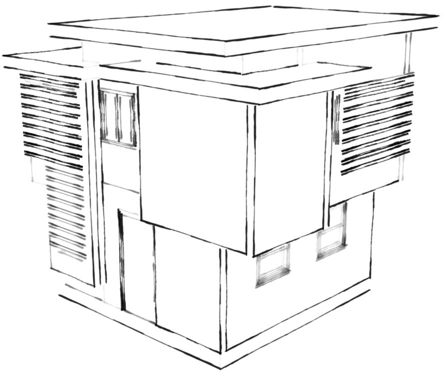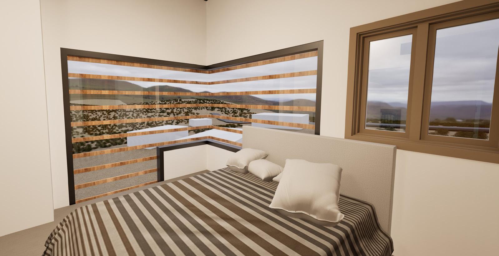 The design aspect of this project was to think minimalist. To fit the comfort of the home in a 16’x16’ cubical. The thought of this design was to add extrusions to the building to create more room for the bedroom. In contrast to the strong sun light, shading devices were added to help during the summer months.