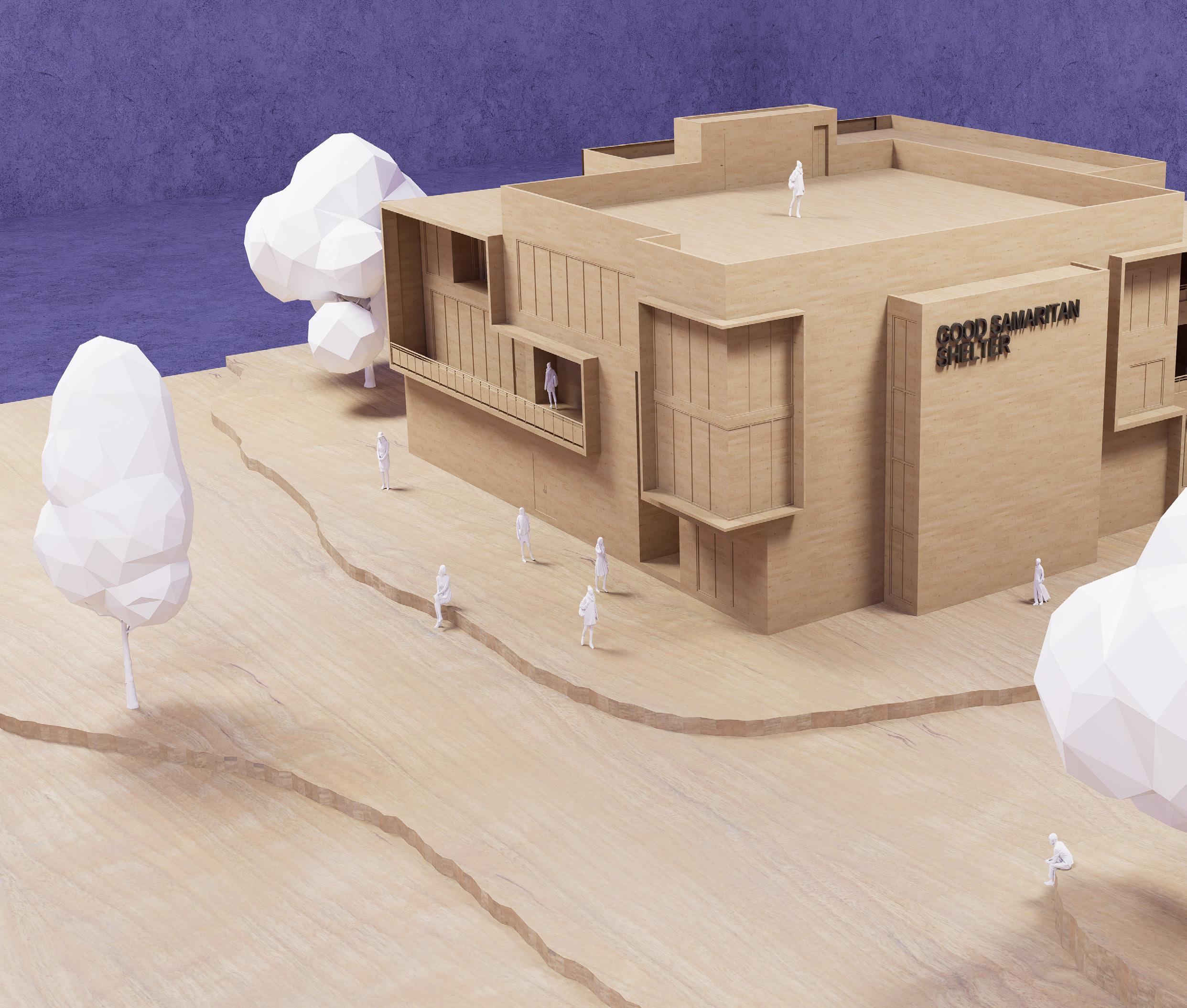 The design for this build was to help satisfy the requirements of the Good Samaritan Shelter. It needed ample room to host more homeless. The design of this build was tricky as essentially a box was given as the size expectation of the build. To maximize the entire cubic box, extrusions and different material combinations were added to give it a more modern rustic look.