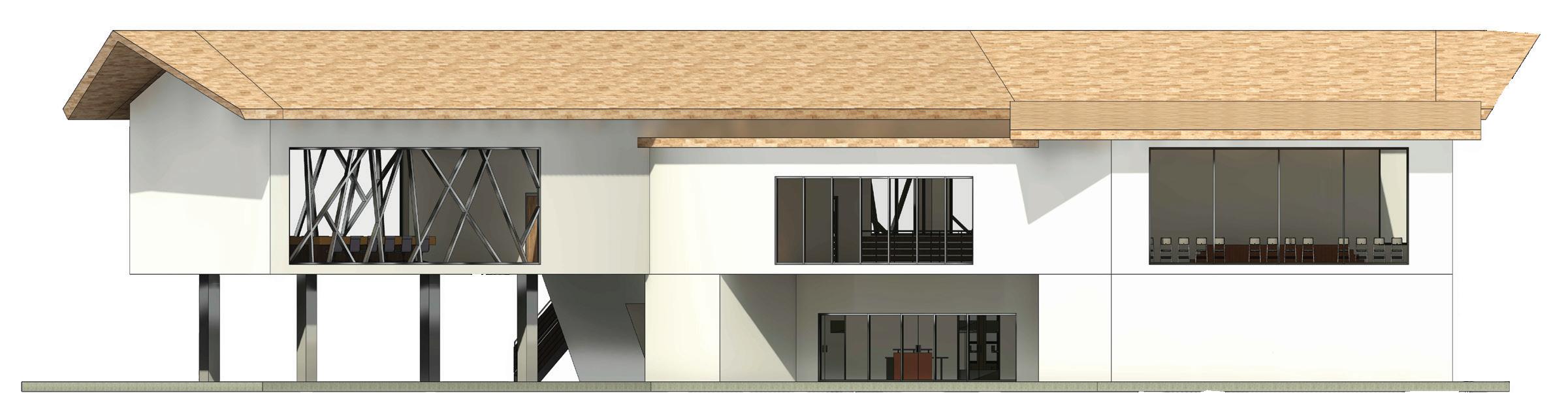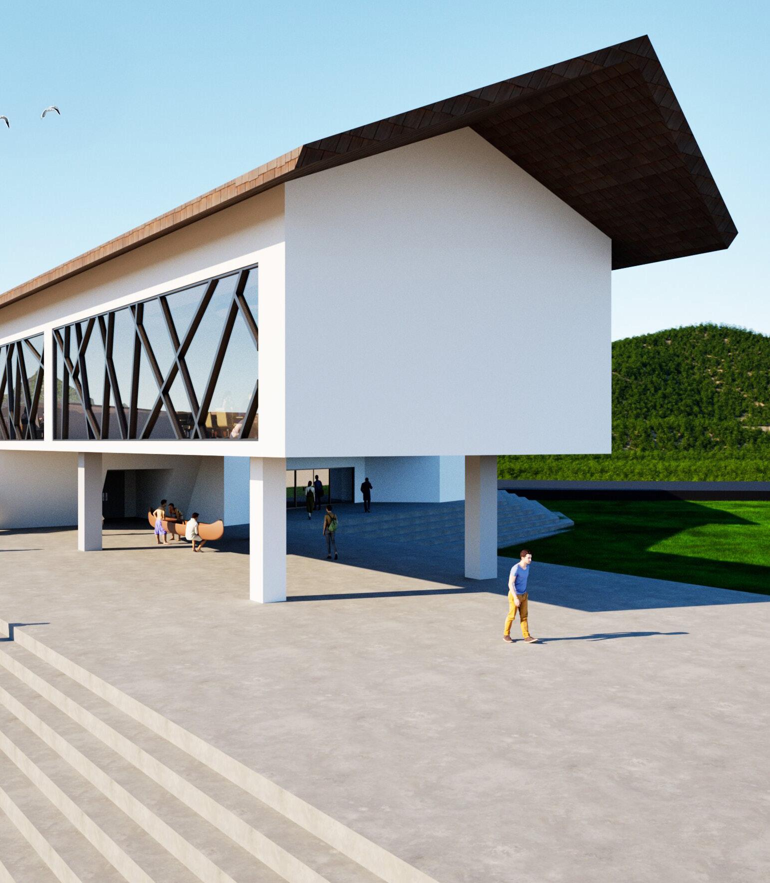 The design process for this building came from the dolphins of the sea and how they hold a great significance in the Hawaiian culture. Dolphins provide wisdom, protection, and spiritual guidance. In the build aspect, curtain walls were added along side the North and West Elevation to provide sunlight throughout the building as well as being able to provide great views of Avila Beach. The mullion design was inspired by the Polynesian stick charts that native Hawaiians used for navigation. This design created an abstract look to the building.