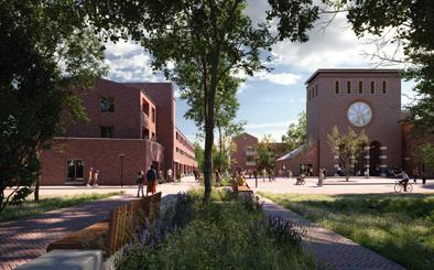 De voormalige bedrijfslocatie maakt plaats voor een groene, levendige woonomgeving.