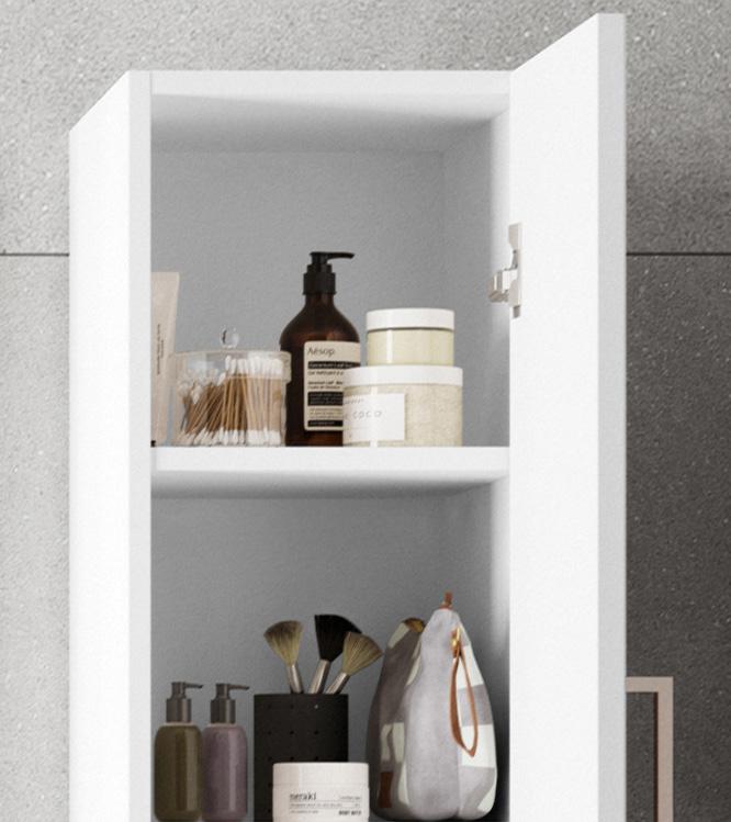 MARI hvit matt høyskap 40 cm hyller i skap. 400720. FYLI speil 120 cm. 24012.