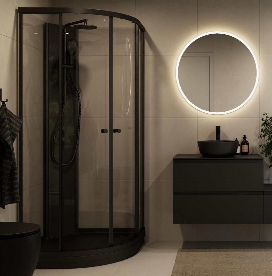 S829-028 Rammespeil Moon ø90 cm, sort, lysstyring (x2)