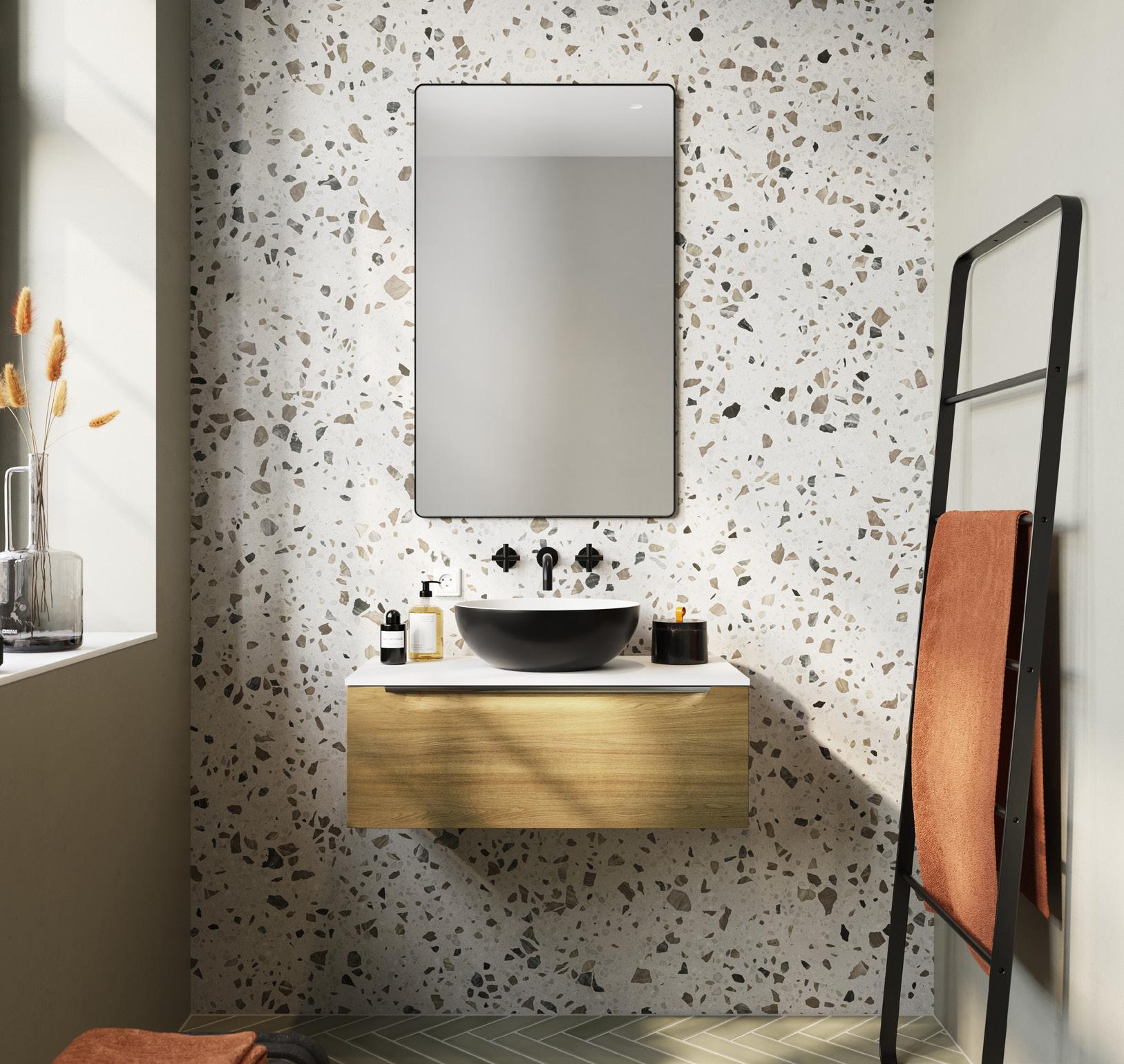 – Hvilket speil som passer best, kommer an på romløsningen og størrelsen på badet, forteller hun. Fordelen med et rundt speil er at det gir et harmonisk uttrykk, og skaper litt mer balanse i alle