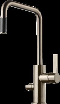 Stilrent hjelpemiddel på kjøkkenet for i dag og fremtiden. Med uttrekkbar tut gjør renhold av oppvaskkum til en enkel sak. Ved bruk har du mulighet til å variere mellom to stråletyper. Kjøkkenbatteriet har også en sikkerhetsfunksjon til oppvaskmaskin, som stenger vanntilførsel etter endt bruk.