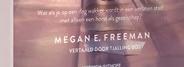 megan e. freeman schrijft al sinds ze op de basisschool poëzieles kreeg en de kracht van woorden ontdekte. Alleen is bekroond met o.a. de Colorado Book Award en staat op alle belangrijke leeslijsten in de VS