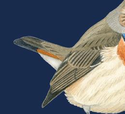 Blauwborst Luscinia svecica BD L 13-14 cm. Broedt in N-Europa in fjells met wilgen en berken, in rest van Europa in moerasgebieden, langs vennen, sloten en rivieren met elzen, wilgen en riet; ook in aardappelvelden, schorren, etc. Soms ook in drogere berggebieden. Zomergast (meest maa-sep); overwintert vooral in Afrika en Z-Azië. In Nederland Witsterblauwborst L s cyanecula wijdverspreide broedvogel en Roodsterblauwborst L s svecica zeldzame doortrekker (mei). Voedsel bestaat uit insecten. Nestelt in graspol of laag in dichte wilgenstruik. HERKENNING Vrij klein en slank, met lange, dunne poten. In alle kleden (behalve juveniel) te herkennen aan duidelijke roomwitte of witte wenkbrauwstreep en roestrode vlek aan staartbasis (vaak te zien in vlucht, of wanneer vogel in zit staart omhoogwipt). Voor variatie in kleed van aa, zie onder. Eerst worden broedvogels van N-Europa (svecica) beschreven. a: helderblauwe bef (kin, keel en borst), aan onderzijde omrand door smalle zwart-witte en bredere roestrode band; midden in blauw afgeronde, roestrode vlek (‘ster’). In najaar wordt deel van opvallende keeltekening vervangen door geelwit en zwart, maar doorgaans blijven onderste delen van borst en zijkeel blauw. o: variabele keeltekening, vaak met blauw beperkt tot lagere deel van bef, sommige zijn verwarrend a-achtig met grotendeels blauwe bef (maar laterale keelstreep zwart en kin en keel nooit volledig geel). Bij sommige oudere en vrijwel alle 1e zomer vogels ontbreekt alle blauw en roestrood en is bef roomwit, begrensd door zwarte streping. Juveniel: fijn gevlekt als juveniel Roodborst, maar let op kenmerkende staartpatroon. Variatie aa: broedvogels van Z-Scandinavië en groot deel van C- en W-Europa (cyanecula) hebben kleine witte ‘ster’in blauwe bef (in plaats van iets grotere roestrode vlek bij noordelijke vogels), en blauw is meer ultramarijn- dan kobaltblauw. Soms ontbreekt witte vlek en is bef geheel blauw. Broedvogels van N- en C-Spanje (azuricollis) hebben vaak ook geheel blauwe bef, evenals alle broedvogels in de Kaukasus (luristanica). GELUID Meest gehoorde roep een droog, klikkend tsjak (als geluid van draad die tegen vlaggenmast slaat). Wanneer opgewonden ook een tapuitachtig, fluitend hiit (en soms HUUit als Gekraagde Roodstaart). In najaar ook een hees bzruu (herinnert aan Rietgors). Zang krachtig en helder, vaak beginnend met lang achtereen herhaald, luid, metalig zruu of meerlettergrepig zri-zriZRUUT, langzaam versnellend en opeens overgaand in vloed van melodieuze of harde en krassende noten, vaak vermengd met goede imitaties van andere soorten.