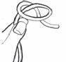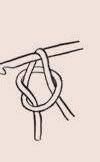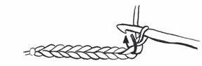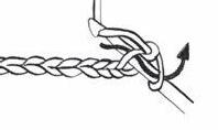 Je hebt de opzetketting (of een andere steek) op je haaknaald. Steek de haaknaald onder de draad door zodat je een omslag op je haaknaald hebt. Trek de omslag nu door de lus op je naald en je hebt een losse gehaakt.