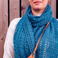 Het is een smalle rechthoekige sjaal met een groots uiterlijk. De golvende randen maken het design helemaal af. Ook al oogt het patroon ingewikkeld, is het eigenlijk heel gemakkelijk te onthouden en te haken.
