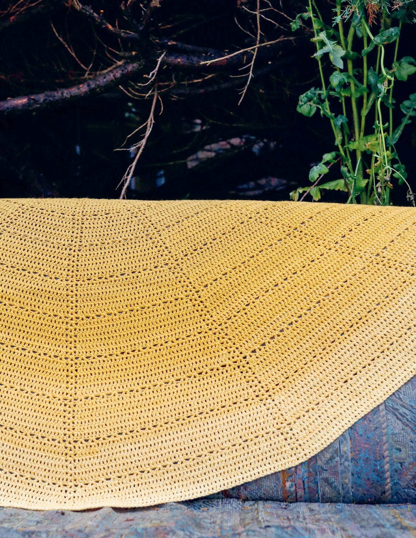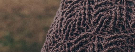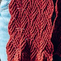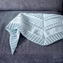 De simpele dichte basis van stokjes wordt in segmenten verdeeld door de symmetrische banen van v-steken. De halfronde vorm is ideaal om zowel als omslagdoek te gebruiken als om de hals te dragen.