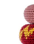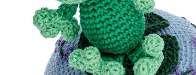 Projecten die nieuw zijn in mijn derde babyspeelgoed haakboek zijn verschillende tuimelaars, een stapeltoren, en een uniek stuk babyspeelgoed met trekkoordjes en ringen dat ik het ‘Ring Ding’ heb genoemd. Zoek je een patroon met extra uitdaging? Probeer dan zeker de kikker tuimelaar met geborduurde bloemen eens! De toepassing van borduurwerk boven op het haakwerk zorgt voor een heel bijzonder resultaat.