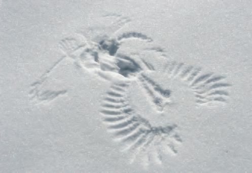 Het herkennen van sporen in de sneeuw kan ook door niet-criminologen. Hier heeft een torenvalk een muis gevangen. Om zijn prooi te beschermen spreidt hij zijn vleugels uit. Dit wordt mantelen genoemd.