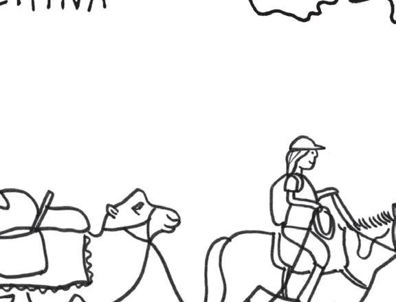 Ik krabbel op, grijp naar mijn hoofd en zie dat beide paarden al ver bij me weg zijn en uit alle macht proberen hun bepakking af te schudden. Mijn hond Tetti rent erachteraan en al snel verdwijnen ze achter de horizon.