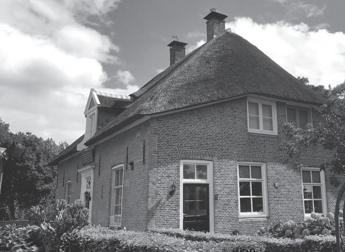 De vrachtwagen wrong zich tussen de oude taxusbomen en de kerk door en kwam tot stilstand voor een langgerekt huis met een rieten dak. Aan het huis, pal naast de kerk, zat een tuinmuur vast, waardoor ik direct zag dat je hier geen hoekkijkertje kon spelen. De vrachtwagen stond nog maar net stil of ik liet me al uit de cabine zakken, brandnieuwsgierig naar ons nieuwe huis. De voordeur stond open. Ik rende een lange marmeren gang in met halverwege rechts een nog veel langere gang, er kwam geen eind aan! Er waren beneden vier grote kamers, een grote keuken, een betegelde ruimte die als badkamer dienstdeed en nog een kamer, die mijn vader confisqueerde als studeerkamer, maar die hij al snel ‘de natte kamer’ noemde. Het vocht sloeg daar namelijk zo door de muren heen. Die kamer en de keuken waren later aangebouwd, omdat er op een gegeven moment een dominee was komen wonen met veel kinderen. Dat aangebouwde deel van het huis was van slechte kwaliteit. Als mijn vader in de natte kamer zijn preek aan het voorbereiden was, was je niet welkom.