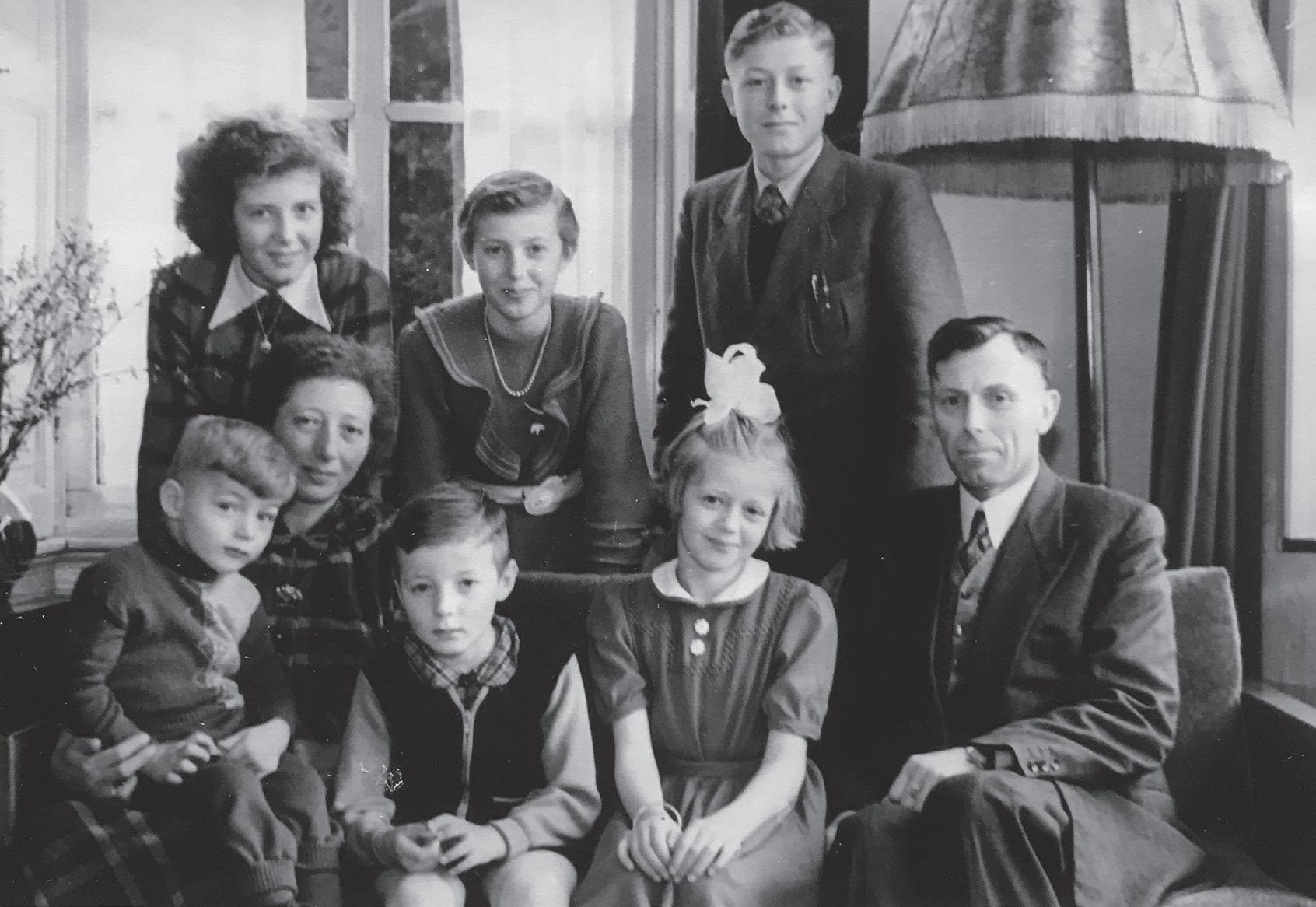 1953 Op de achterste rij vlnr Riet, Lucy, en Wim en op de voorste rij, Henk, moeder, Nico, Henny en vader