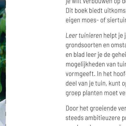 Leer tuinieren is het ultieme boek voor als je nog niet zo veel weet over tuinieren. Leer de basis voor het verzorgen van je gazon, struiken, bloemen en groenten en ga aan de slag. Dit boek staat boordevol handige tips en inspirerende ideeën: