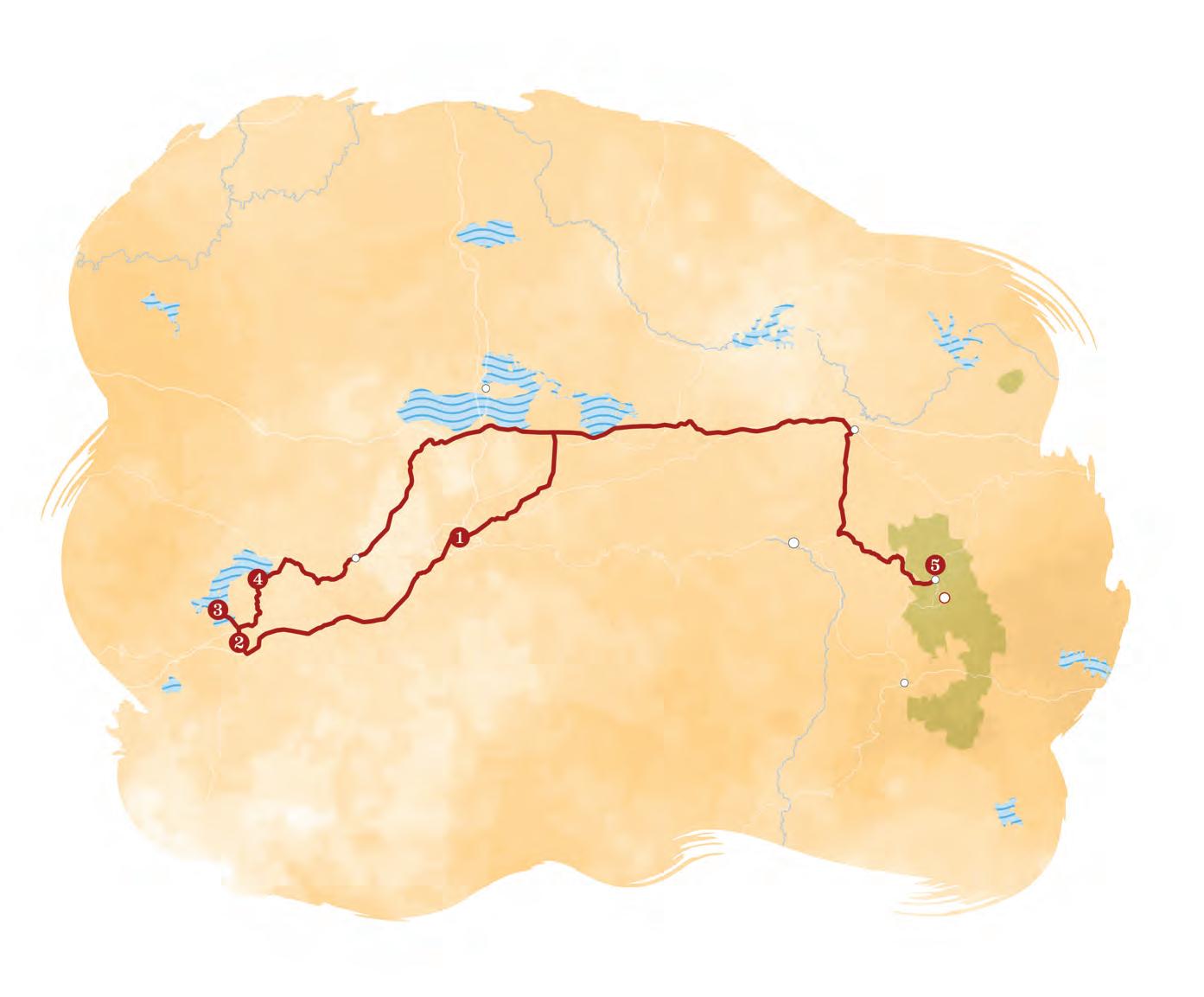 Afstand: 436 km Vervoermiddel: auto, taxi of bus Moeilijkheidsgraad: gemakkelijk
