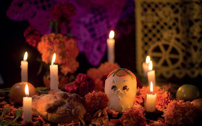 De Dag van de Doden is een eeuwenoude traditie die teruggaat tot aan de spirituele rituelen van de inheemse volkeren van Mexico. De katholieke conquistadores hebben het feest overgenomen en van augustus naar Allerheiligen en Allerzielen, begin november, verplaatst. Mexicanen vieren hun doden zoals ze vrijwel alles vieren: met eten, drinken, muziek en veel kleur. Om hun overledenen te eren, plaatsen families in huis (of ook wel op het kerkhof) een ofrenda en versieren die met foto’s en massa’s cempasúchil (grote afrikaantjes). Bij de ofrenda worden ook kaarsen, calavera’s (schedels van suiker), pan de muerto (‘brood van de doden’: een brood met eigeel, mescal en gedroogd fruit), andere lekkernijen en een kom water neergezet, aangezien de geesten hongerig en dorstig zijn na hun reis.