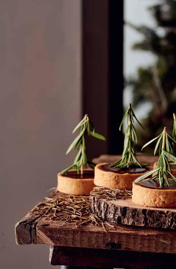 Nicolas, een vriend van mij in Parijs, ook patissier, vertelde dat hij een dennenganache maakt voor kerst. Hij haalt dan een tak van zijn kerstboom af en doet deze in de slagroom om te laten trekken, hahaha. Dat vond ik wel erg ver gaan, dus ik heb gezocht naar eetbare dennennaalden. De smaak is heel bijzonder moet ik zeggen.