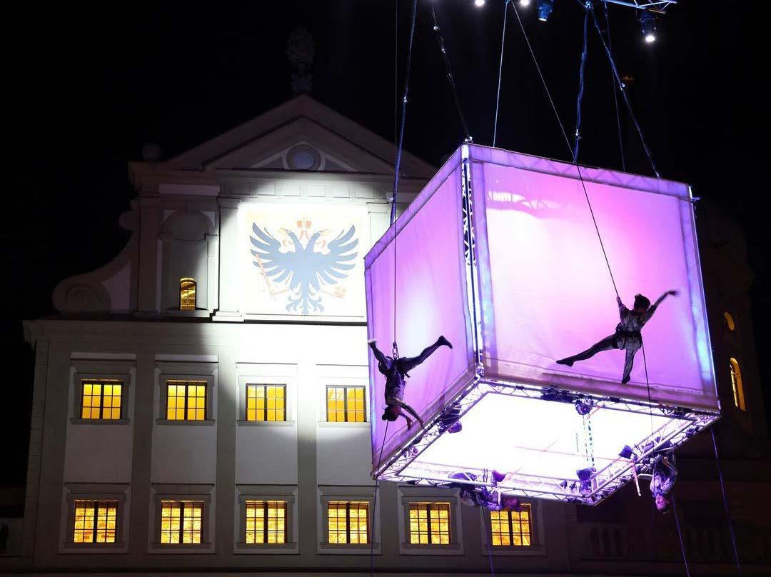 Hva: Få med deg fantastiske dansere fra det italienske kompaniet Eventi Verticali i et akrobatisk, og svimlende høyt, avslutningsshow ved hovedscenen i Bibliotekparken. Showet består av en luftscene med en hengende, tredimensjonal kube, der akrobater, lys, skygger og musikk forenes og gir en ott visuell opplevelse siste kvelden av skutefesten. I samarbeid med Nordic Crane Kynningsrud. Hvor: Bibliotekparken. Når: 23:30 til ca. 24:00.
