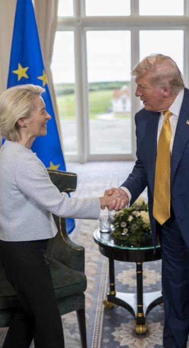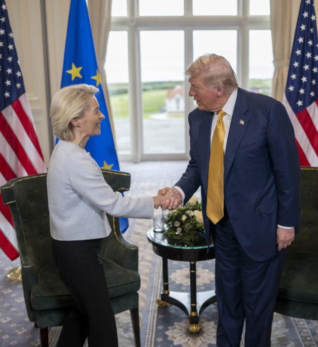 Op 27 juli vond in het Schotse Turnberry een doorbraak plaats tijdens overleg tussen president Trump en voorzitter Von der Leyen. Beiden bereikten een politiek akkoord, de basis voor de verdere handelsbetrekkingen tussen de EU en de Verenigde Staten. De belangrijkste afspraken waren: