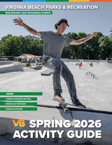 Welcome to the spring 2026 seasonal guide to Virginia Beach Parks & Recreation, which includes the return of our spring special events including the Cherry Blossom Festival, Earth Week, and our celebration of Native American culture the Rising Sun Pow Wow. Don’t forget to hop on down to the rec centers to check out some EGGciting programs, too!
