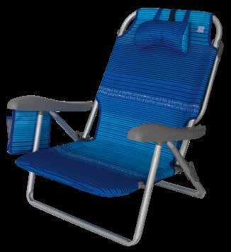 Komfortabler Strandstuhl mit Liegefunktion. Die verstellbare Rückenlehne (5-fach) kann komplett nach hinten verstellt werden, so dass eine Art Liege entsteht. Der Sitz dieses Kendal Beach hat eine bequeme Größe von 47 x 36 cm und ist niedrig zum Boden (25 cm). Hergestellt aus gepolstertem Mesh-RipstopPolyester in Kombination mit einem leichten Aluminiumrahmen. Ausgestattet mit einem Kopfkissen und Schultergurten für einfachen Transport.