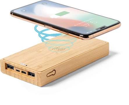 Wireless charger 10W, bamboo front part, works with devices with inductive charging function