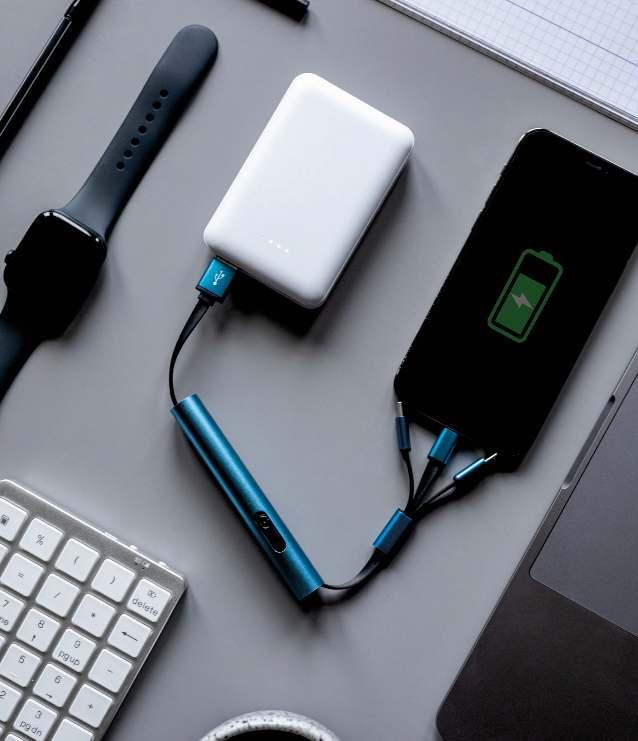 Power bank, fast charging function, 4 diodes indicating power level, can charge three devices simultaneously Powerbank mit Schnellladefunktion, 4 Dioden zur Anzeige des Ladezustands, kann drei Geräte gleichzeitig aufladen