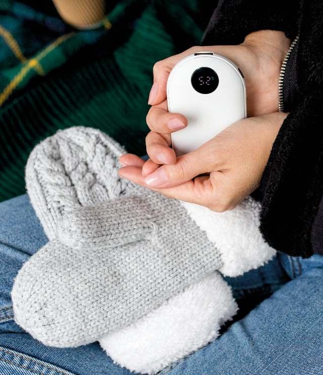 Power bank Air Gifts, pocket size, digital display of power level, felt pouch with carabiner clip included, can charge two devices simultaneously