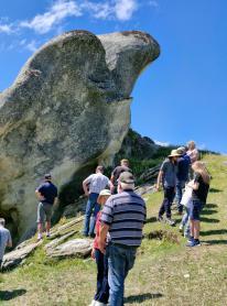 Back on the road again and we were on the way to Waiau which was a bit more familiar. As we came into Waiau, Selwyn commented that the De Soto was pulling hard to the left – sure enough we had a puncture. The driver had the foresight to stop just opposite the garage where there was a flat concrete space for jacking up the car and as we drove in we discovered the garage open. Yay! Even better was the fact that this good ol’ country garage had a 15” tube in stock and happily fitted it for us. The run to Kaiakoura was thankfully uneventful so we settled into our accommodation and had a shared fish and chip tea. None of the raucous partying we heard one motel had! Saturday morning started with a guided tour of Fyffe house and gardens where we learned some interesting history of both Kaikoura, whaling and the residence we were visiting. Sadly I can