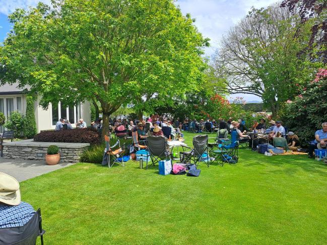 This was our first Show Weekend Run for a few years as we have managed to be away on those dates. I wasn’t optimistic about the weather either as I do tend to trust the forecast. Thankfully this was wrong (but so were the clothes we packed!) and we had a glorious weekend. With the usual start from Cutler Park after a bit of sustenance and some words from Katryna Shaw and Henry Little, our leaders for the weekend, the group of 56 participants was off. There are only a couple of ways to get across the Waimak but once across, we found we were on some roads that Selwyn and I hadn’t been on before. Some interesting things to look at and curiosity about how far out of Rotheram the lunch stop was. We arrived at the Woodland Spring Garden for lunch and quickly settled ourselves into a shady nook in their gorgeous garden full of azaleas, rhododendrons and other flowers. One of our party was coveting one of the horse sculptures in the garden but was convinced to leave it on site. The bonus here was the tea, coffee and yummy fudge cake and muffins provided as a sweet treat.