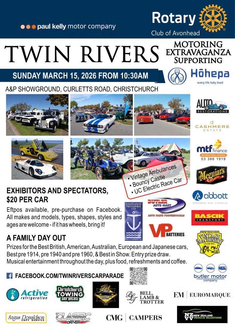 Sunday 15th March – Twin Rivers Motoring Extravaganza at the A&P Showgrounds. See separate notice later in the Hub.